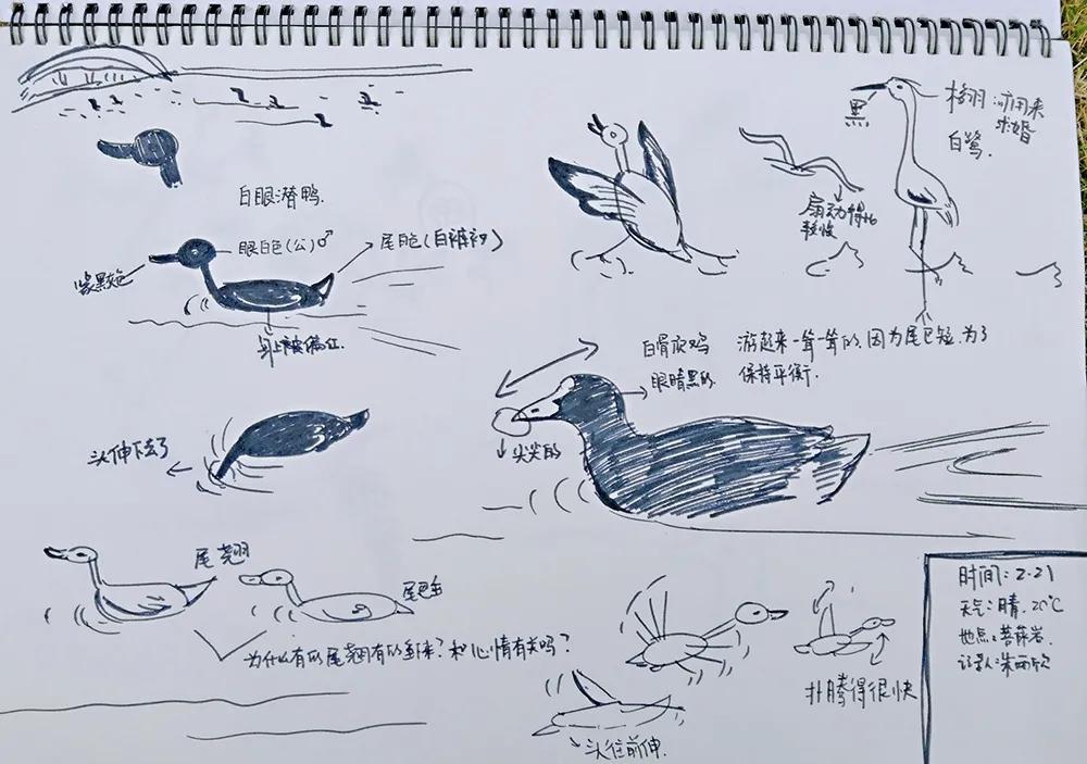 今天同学们在小鸟老师的带领下,观察到了白眼潜鸭、红头潜鸭、红头潜鸭、骨顶鸡、小鸊鷉等多种水鸟。