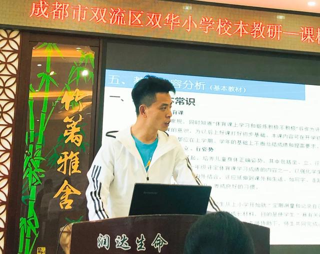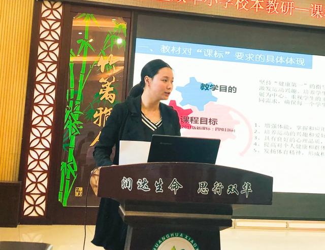 郎永秀老师从课标要求、教材编排原则、思路以及教学目标、教材特点进行了深入的分析;何浩老师对双华小学体育校本化一年级课时内容安排和比重进行了详细的介绍;席皓玻老师对一年级“走和跑”内容进行了解读;李丽老师解读一年级“跳跃”教材;