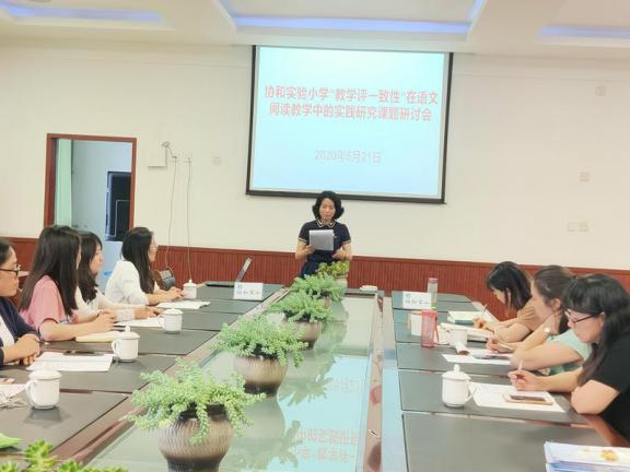 5月21日下午,学校召开“教学评一致性”在语文阅读教学中的实践研究课题研讨会。夏雪梅校长带领课题组全体人员进行深入研讨,发现问题,分析问题,进行交流汇报。