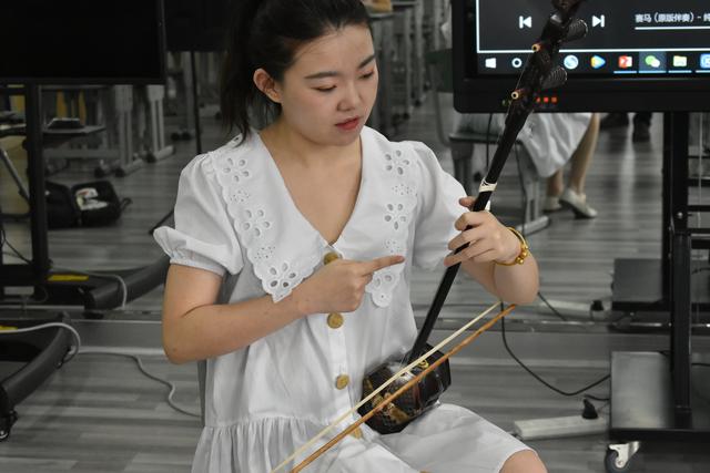 在自弹自唱、指挥和器乐比赛环节,毛欢自信满满地指挥《保卫黄河》,让人忍不住想随着节奏高歌一曲;陈杨诗琪老师的二胡《赛马》,仿佛带我们奔驰在辽阔的草原;刘钞老师为大家吹奏了萨克斯曲《我只在乎你》,旋律清新悦耳,给人耳目一新的感觉;何学老师的自弹自唱曲《小白船》声音优美,感情充沛,伴奏体态丰富......