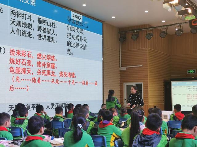 赛课现场,高华群老师执教《女娲补天》一课,她从起因、经过、结果入手,带领孩子们一步步走进那充满奇妙想象的中国神话。高老师亲切的话语、精巧的点拨,引导学生在课堂上积极思考,大胆表达,在交流和表达的过程中增强自身能力,做到把故事讲清楚,讲生动,讲完整,在思考感悟中提升学科核心素养。孩子们都纷纷沉浸于这一堂充满奇妙想象的课堂之中。