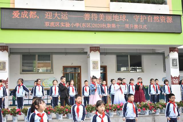 原标题:善待美丽地球 守护自然资源——记双流区实验小学(东区)2020秋期第十一周升旗仪式