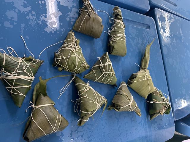 经过漫长的——20分钟的等待,咱们的“首秀粽”终于出锅啦,赶快来找找自己包的第一个粽子,在经过开水洗礼后,你还认识它不?再来尝一口,哇!那滋味你可能无法想象,但我们深深沉醉其中,无法自拔!